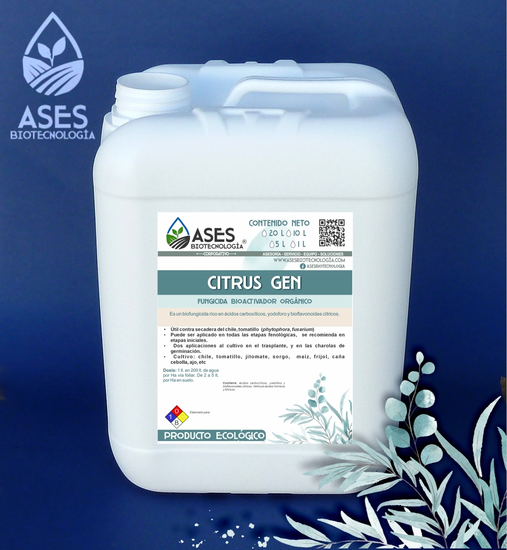 Es un biofungicida rico en ácidos carboxílicos, yodoforo y bioflavonoides cítricos.